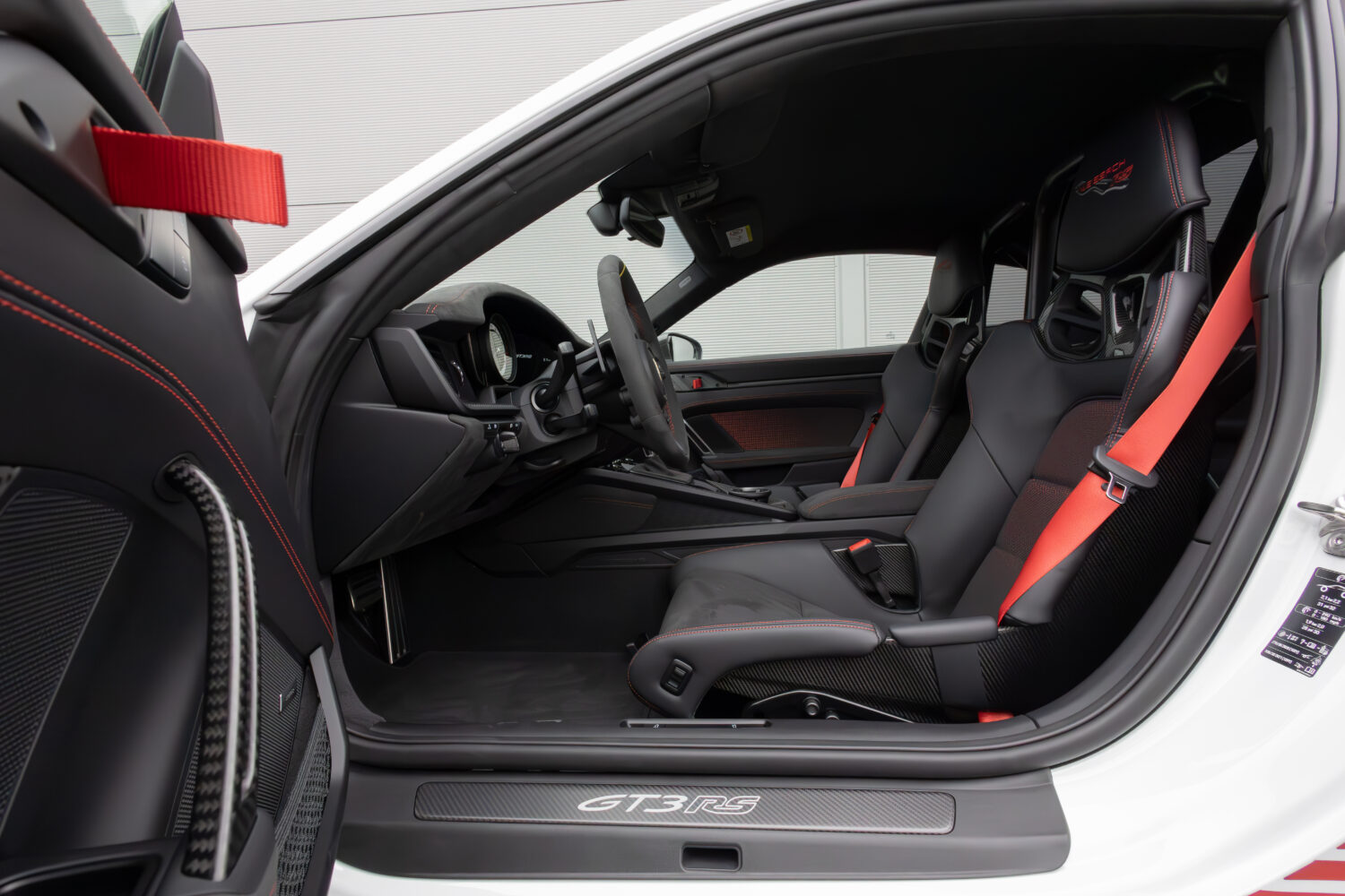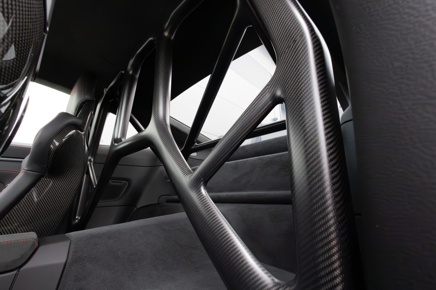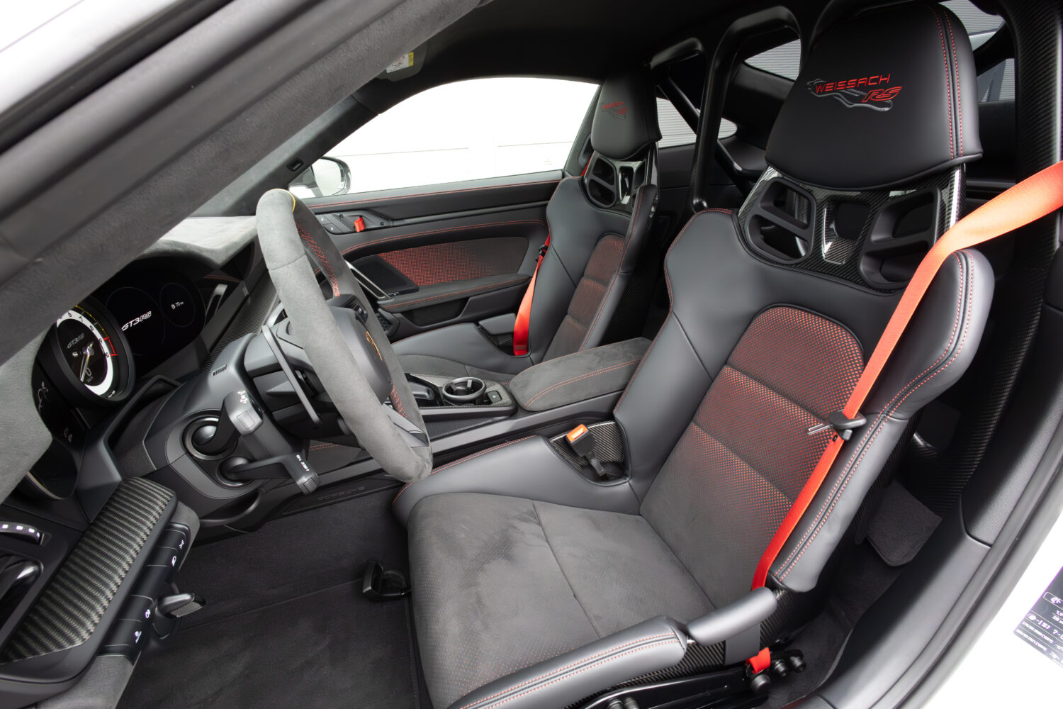 Samochód posiada pakiet wykończenia wnętrza Weissach z rozszerzonym zestawem elementów ze skóry i materiału Race-Tex (czarny, Guards Red). Konfiguracja indywidualna, w której skład wchodzą między innymi: